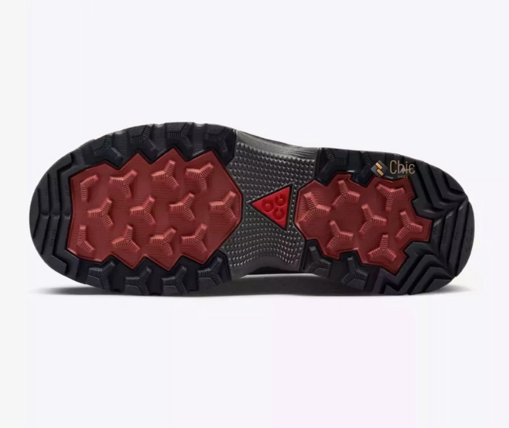 Цвет Trails End Brown — это дань уважения классической эстетике туристических ботинок, переосмысленная в футуристичном дизайне ACG. Глубокий коричневый оттенок с бордовым подтоном в сочетании с агрессивным черным протектором создает образ, готовый к любым испытаниям — от лесных троп до бетонных джунглей.