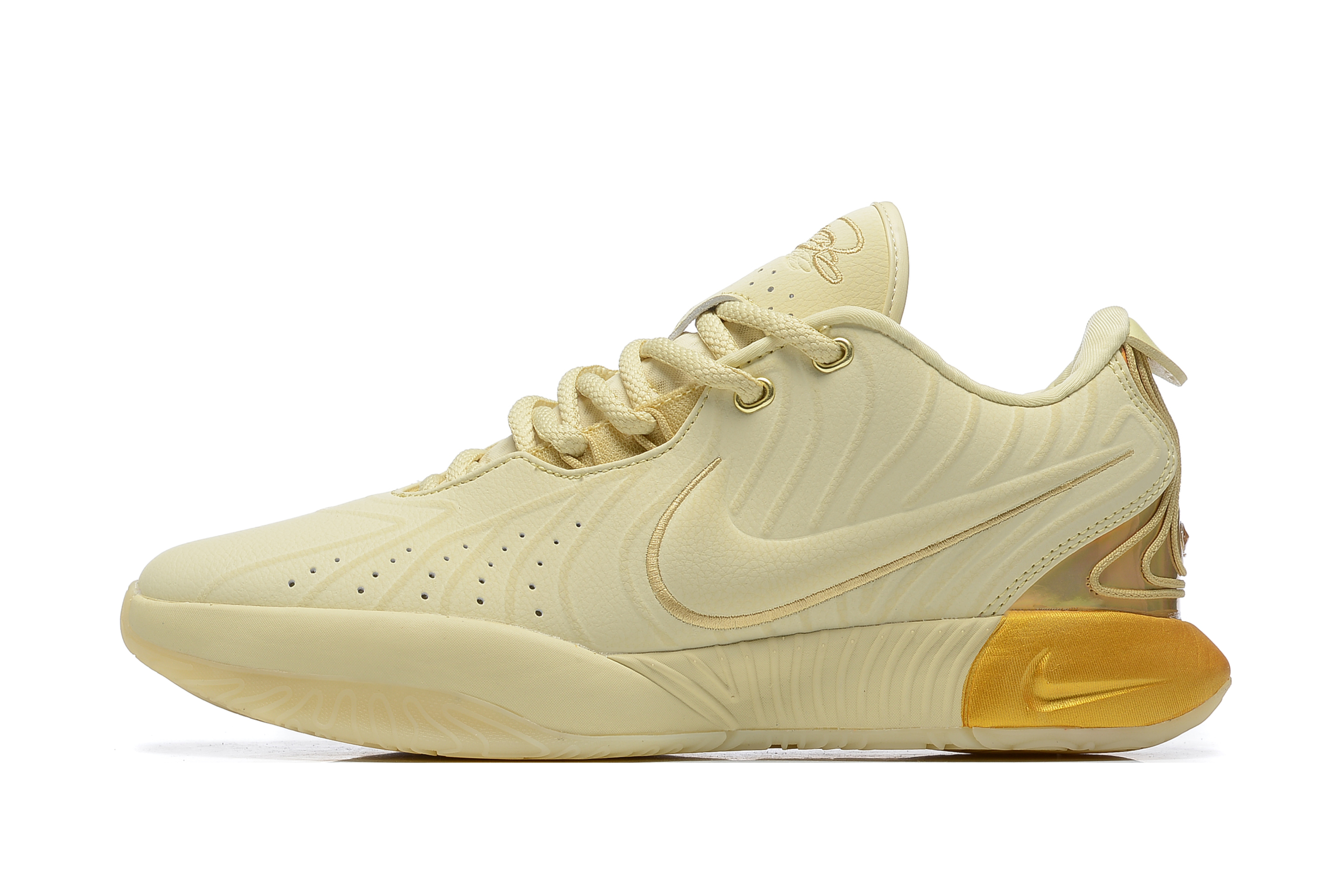 Торжествуй на площадке, выбери кроссовки Nike LeBron 21 Gold и позволь своему стилю и игре сиять!